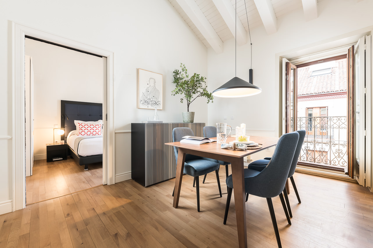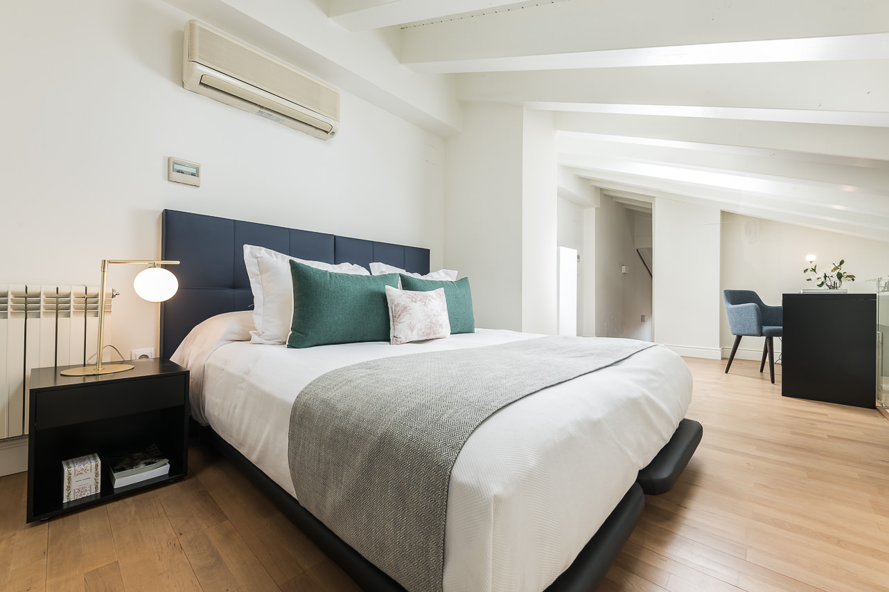 Las viviendas, completamente amuebladas y destinadas al alquiler temporal no vacacional, presentan distintas tipologías —exteriores, mixtas e interiores— que aprovechan la luz natural y el carácter de la zona.